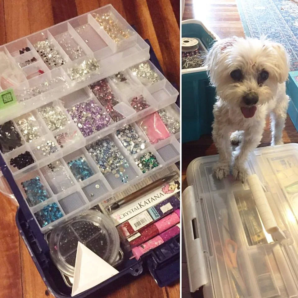 Nothing like having an extra set of paws to help me organise my crystal, rhinestone and craft box
